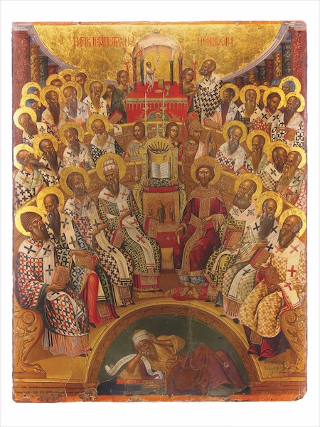 [ABOVE: Michael Demaskinos, The First Council of Nicaea. 1591. Agia Collection, Heraklion, Crete—C Messier / Public domain, Wikimedia]
